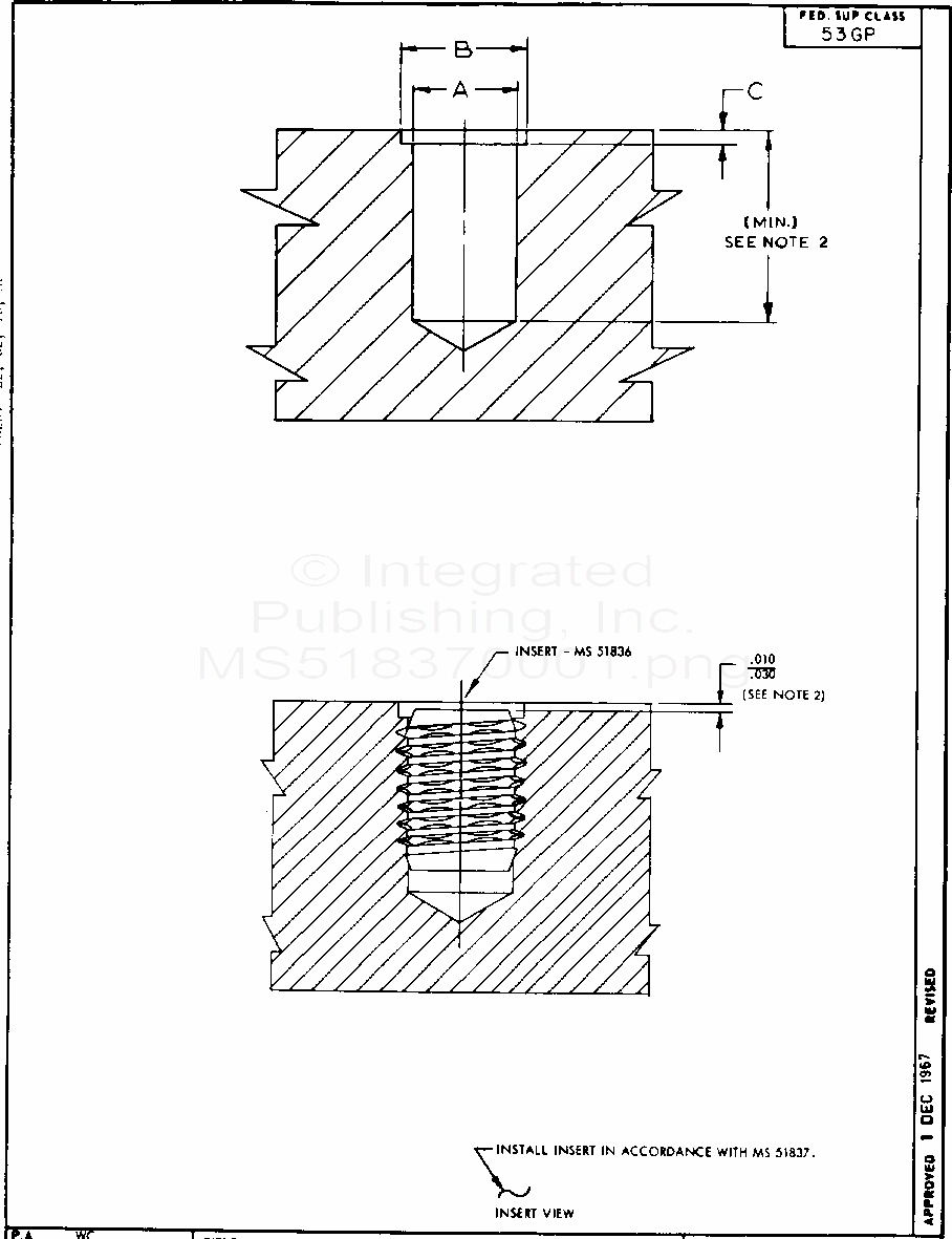 MS51837 Insert, Screw Thread - Thread Forming Hole Dimensions For And Installation Of